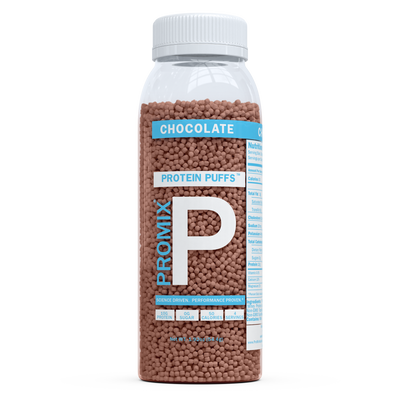 Ingredients: PROMIX Chocolate Protein PuffTM (Whey Protein Isolate, Whey Protein Concentrate, Non-GMO Tapioca, Cocoa, Calcium, Less than 1% Non-GMO Sunflower Lecithin)